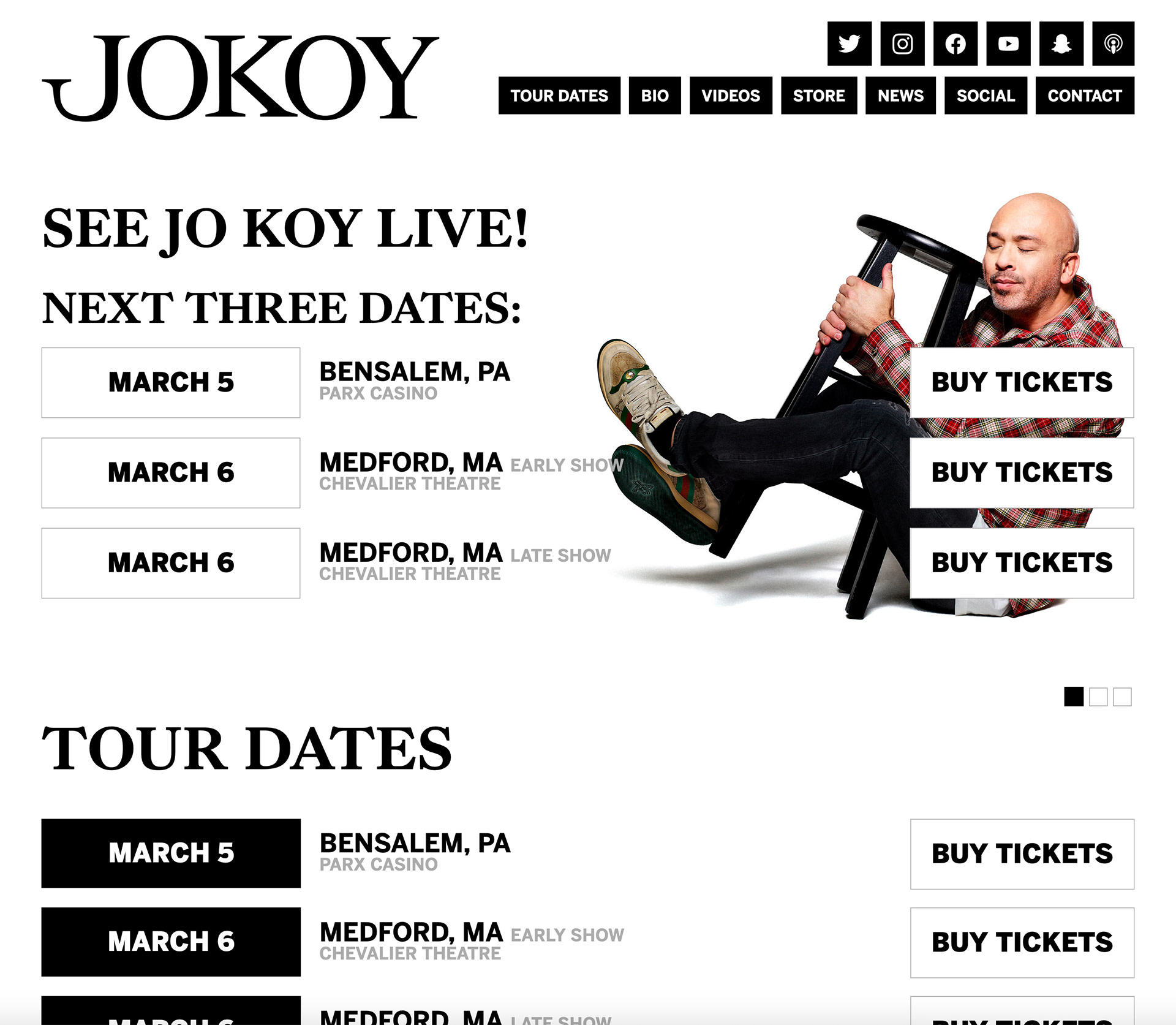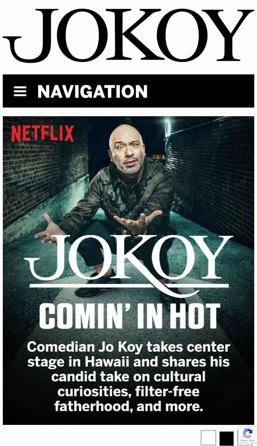 Jo Koy asked me to redesign his website! This is definitely one of the more complex sites I've made in a while. My goal with comedian sites is always to return a lean, functional product that puts their tour dates front & center, and I think I succeeded.