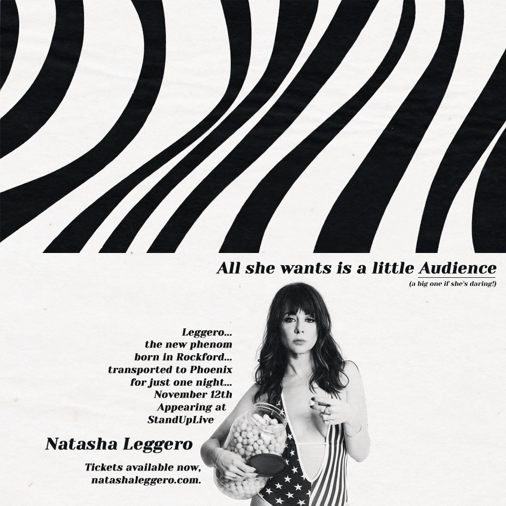 I've had the great fortune to work with Natasha Leggero for about 5 years now, primarily doing touring artwork, but occasionally spot artwork for her various shows. I was even able to do the official album artwork for her special, Live at Bimbo's, a couple of years ago. Here's a sampler of some of the stuff we've put together over.