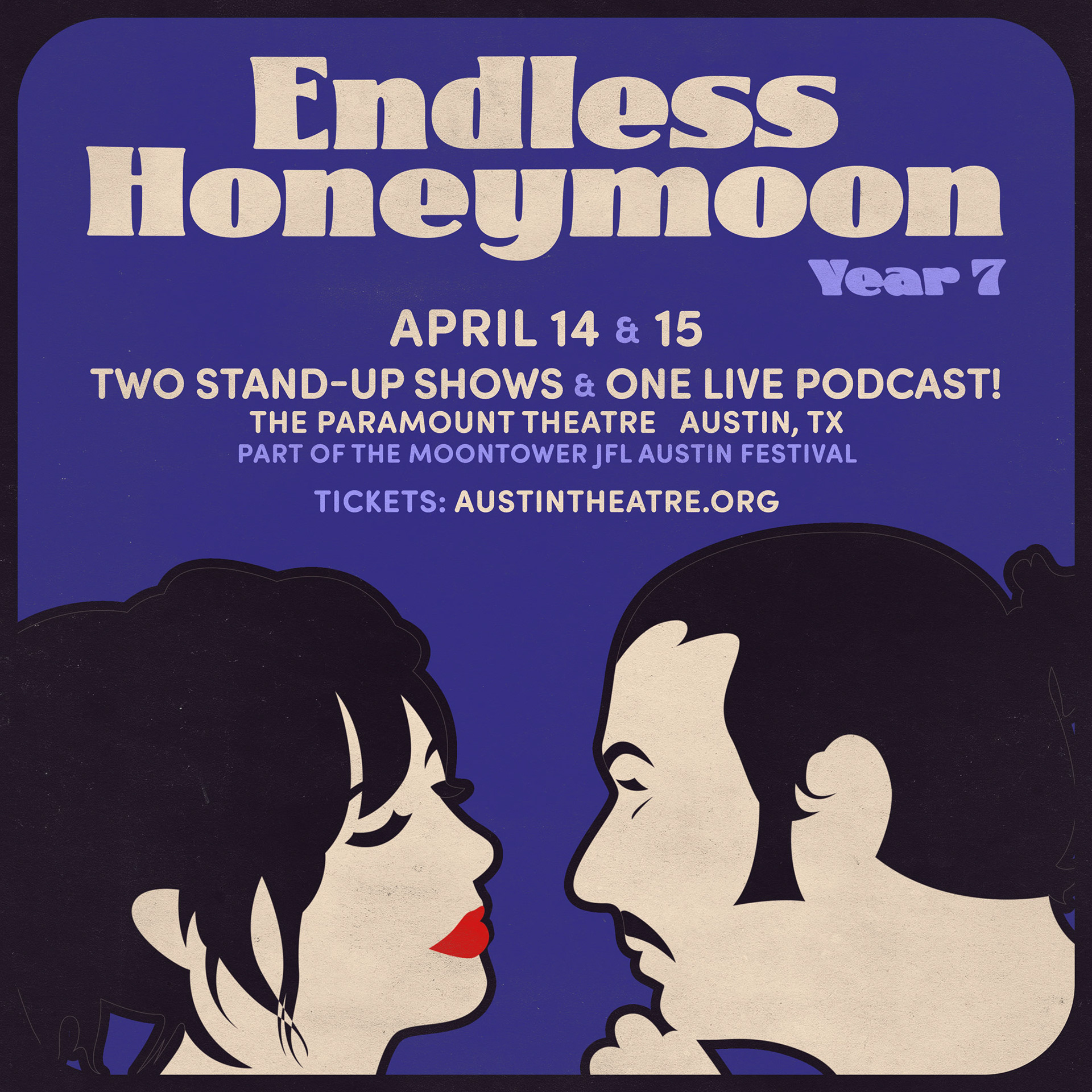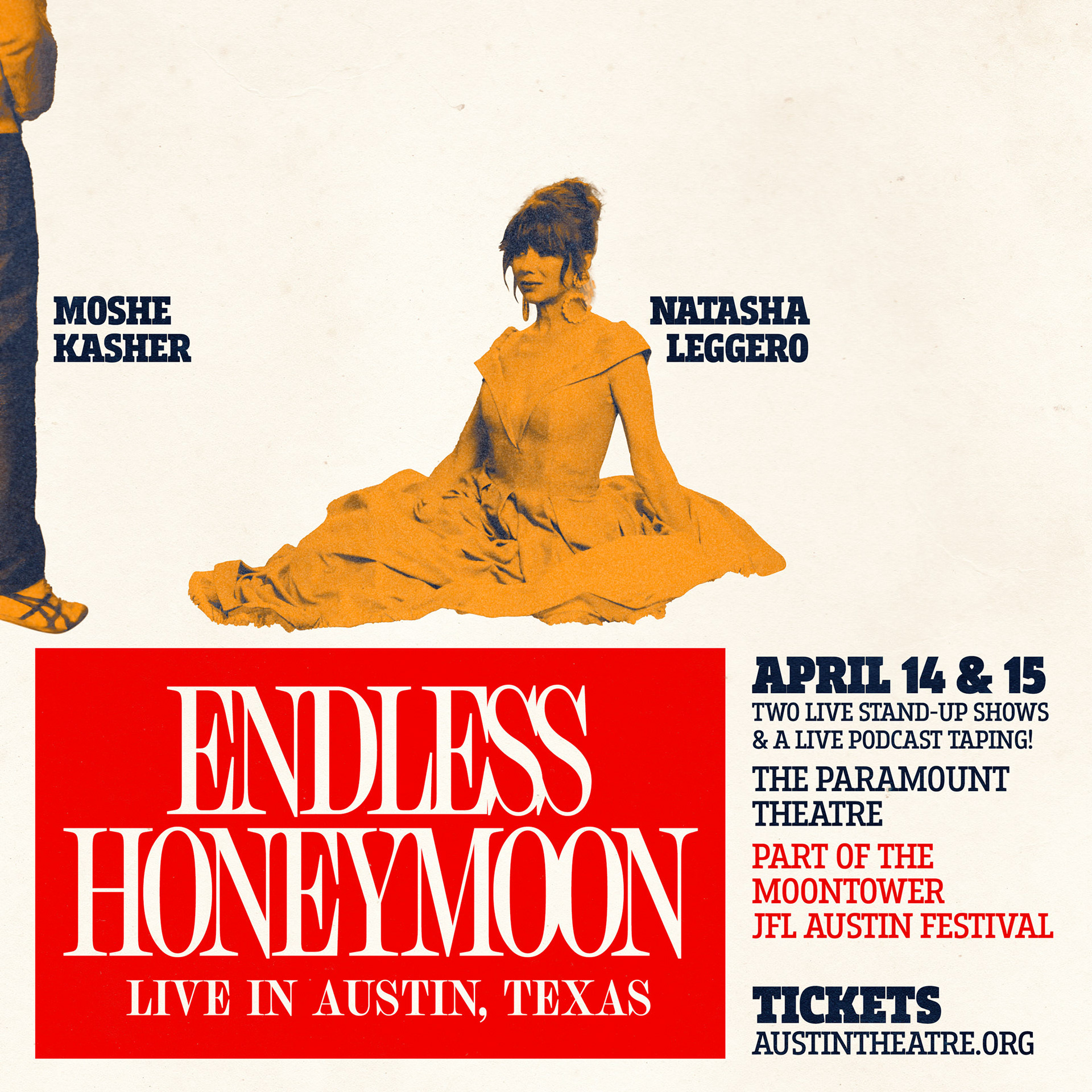 Natasha Leggero and Moshe Kasher restarted their Endless Honeymoon Tour (previously canceled by COVID) in 2021 and rolled it into 2022. Here's a few of the promo images I made to support the tour!