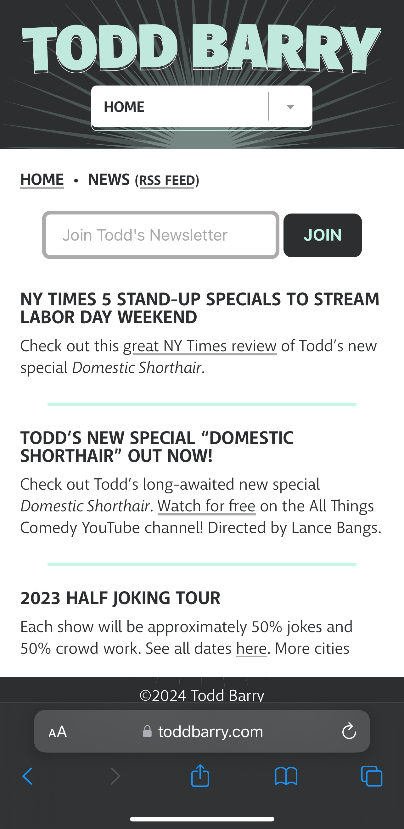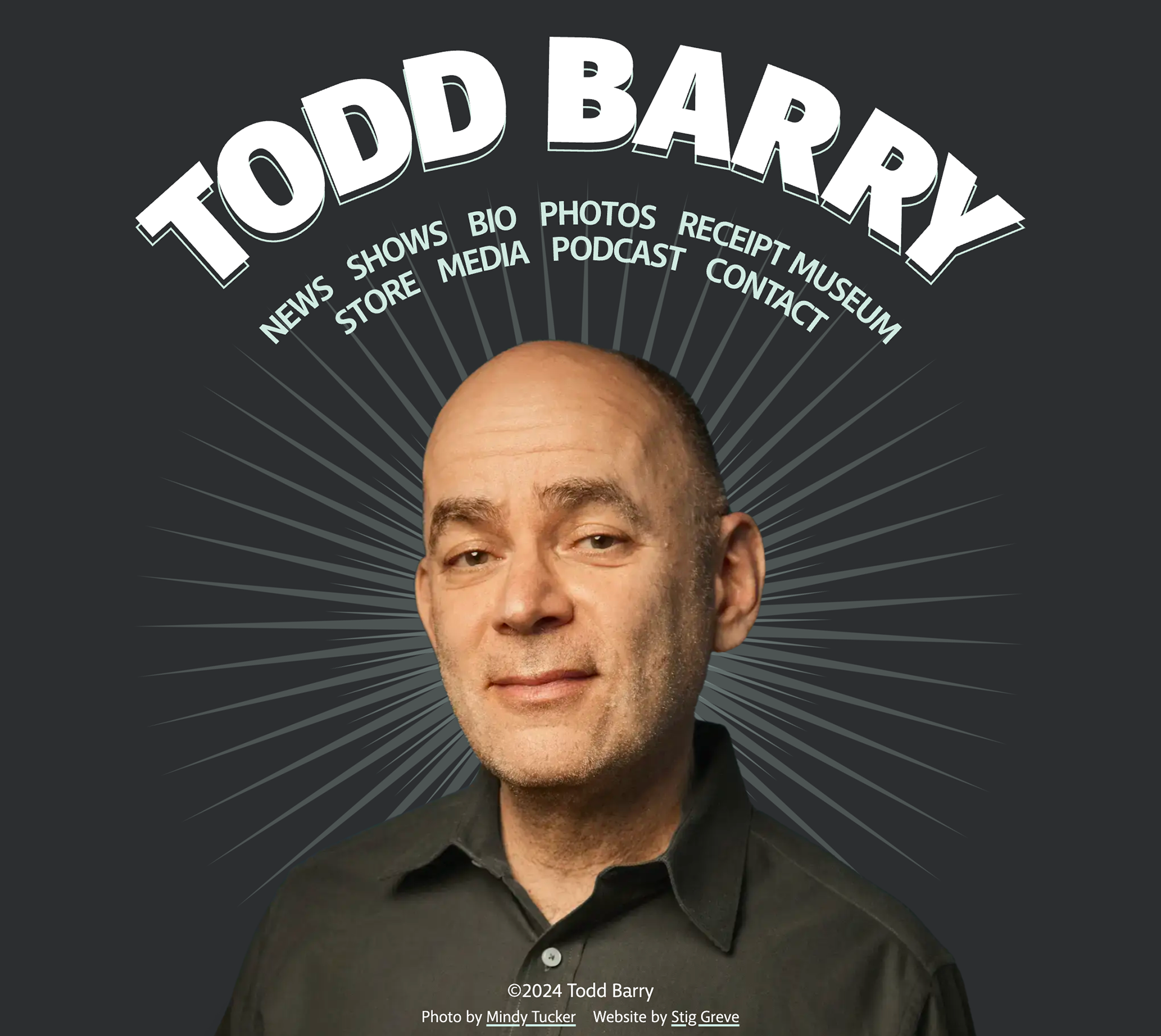 I overhauled comedian Todd Barry's website, following the clear directive: modernize, modernize, modernize. Having initially ported the old design onto Wordpress, my mission was to maintain its essence while bringing it into the modern era.